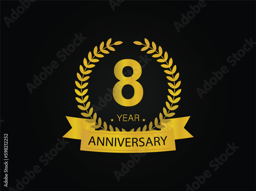 Fototapeta premium 8th golden anniversary logo. with ring and ribbon.