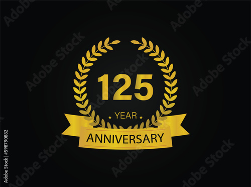 Fototapeta premium 125th golden anniversary logo. with ring and ribbon.