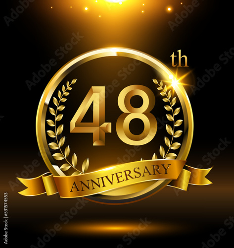 Fototapeta premium 48th golden anniversary logo with ring and ribbon, laurel wreath