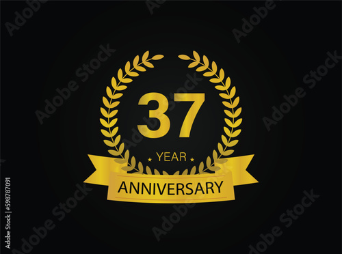Fototapeta premium 37th golden anniversary logo. with ring and ribbon. vector illustrator.