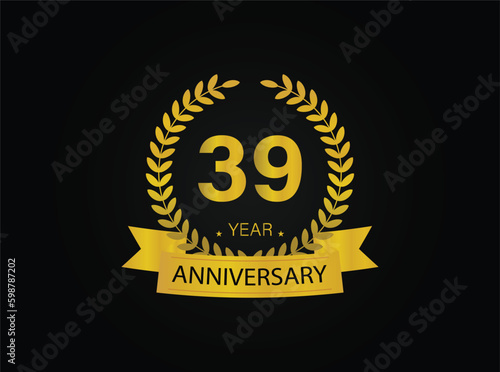 Fototapeta premium 39th golden anniversary logo. with ring and ribbon. vector illustrator.