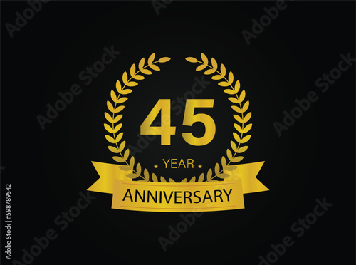Fototapeta premium 45th golden anniversary logo. with ring and ribbon. vector illustrator.