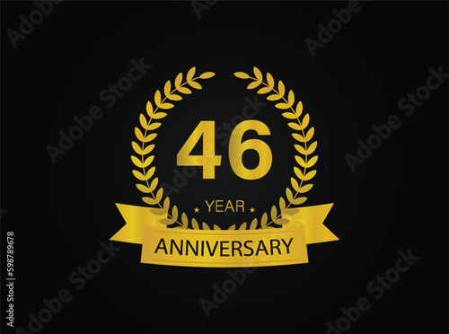 Fototapeta premium 46th golden anniversary logo. with ring and ribbon. vector illustrator.
