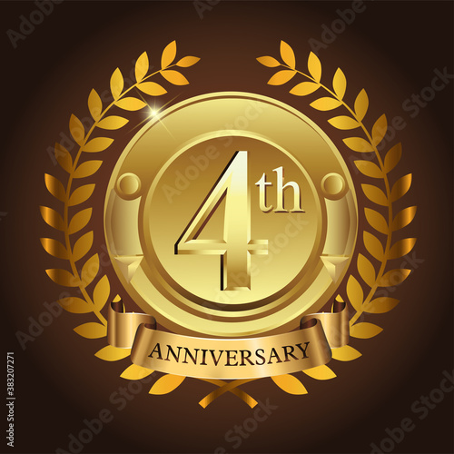 Naklejka premium 4th golden anniversary wreath ribbon logo