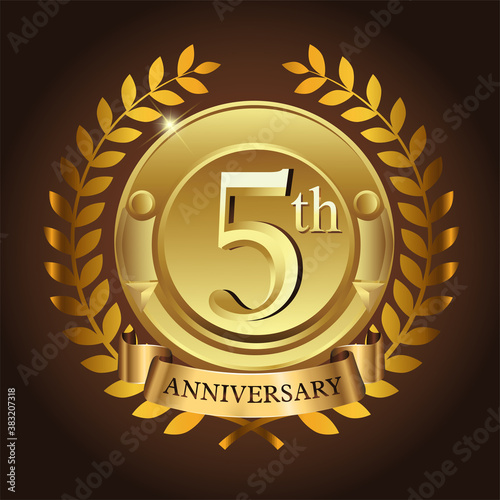 Naklejka premium 5th golden anniversary wreath ribbon logo