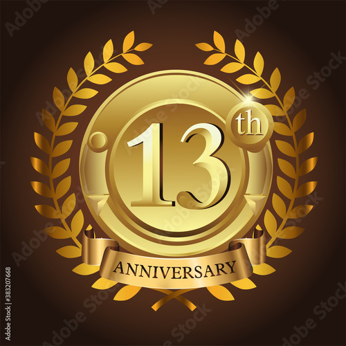 Fototapeta premium 13th golden anniversary wreath ribbon logo