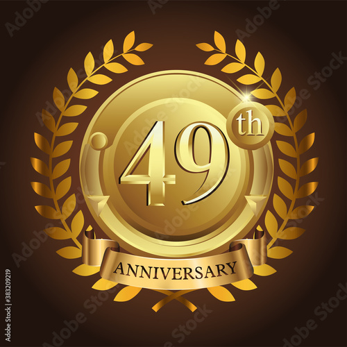 Naklejka premium 49th golden anniversary wreath ribbon logo