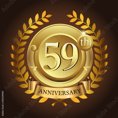 Naklejka premium 59th golden anniversary wreath ribbon logo