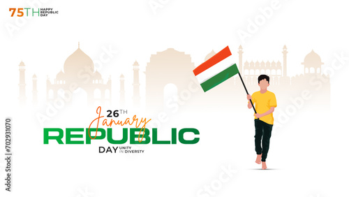 © Mete-X, Naklejka premium 75th Indian Republic Day, 26 January Celebration Social Media Post, Web Benner, Status Wishes