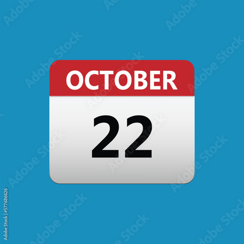 Fototapeta premium 22th October calendar icon. October 22 calendar Date Month icon. Isolated on...