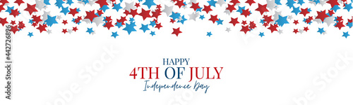 © Natalie Adams, Fototapeta premium 4th of July. USA banner background or header. United States of America Independence Day. American national patriotic holiday design with lettering. Vector illustration.