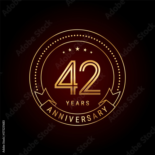 Fototapeta premium 42th year anniversary celebration. Anniversary logo design with golden number and text. Logo Vector Template