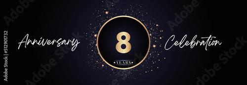 © YearStock, Naklejka premium 8th years anniversary celebration for brochure, banner, happy birthday, wedding, greetings, ceremony, graduation, invitation card. 8 Year Anniversary Template Design Vector.