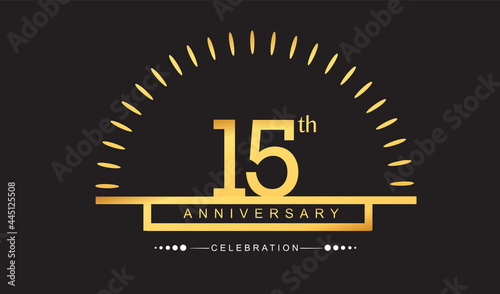 © Brandity, Fototapeta premium 15th years golden anniversary logo celebration with firework elegant design for anniversary celebration.