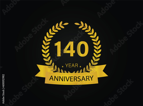 Naklejka premium 140th years golden anniversary logo celebration with ring and ribbon.