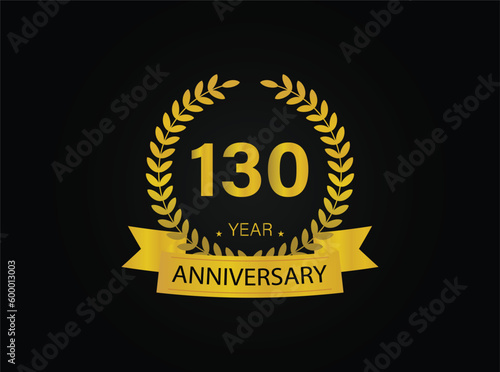 Fototapeta premium 130th years golden anniversary logo celebration with ring and ribbon.