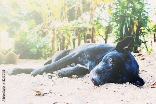 Fototapeta premium thai black dog lying on the floor