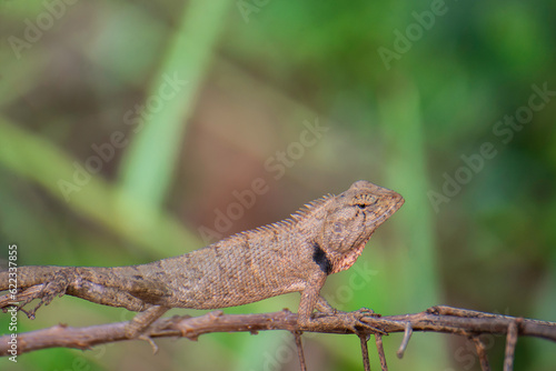 © thaishutter2528, Naklejka premium Thai chameleon with branches and leaves