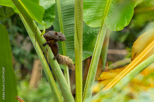 © phichak, Obraz premium Thai common squirrel on a banana tree