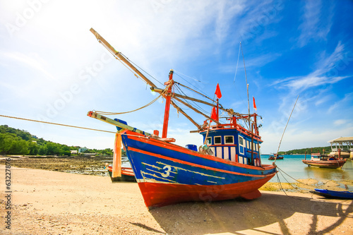 © aaa187, Fototapeta premium Thai fishing wooden boat at Sri Chang island in Thailand