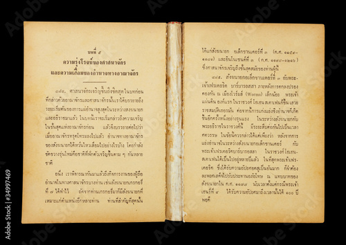 © witthaya, Obraz premium Thai language Old book on the black background