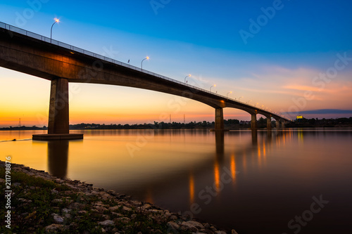 Fototapeta premium Thai-Laos Friendship Bridge on sunset background