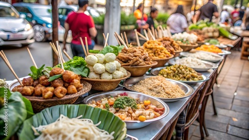 Fototapeta premium Thai street food background AI generated