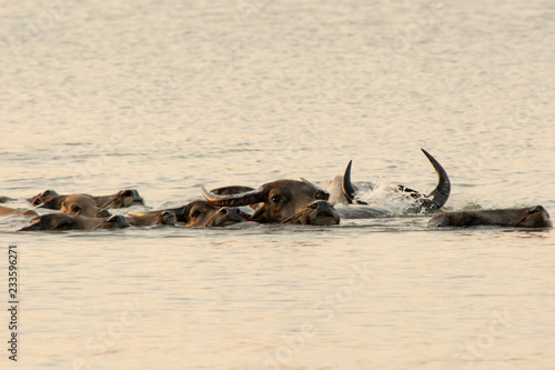 Fototapeta premium Thai swamp buffalo swimming in the lake.