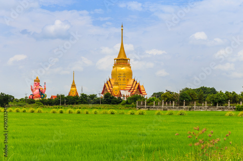 Naklejka premium thai temple and cornfield Phrong Akat Temple Chachengsao In Thailand