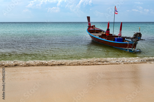 © Ruslan Kudrin, Obraz premium Thai traditional boat on the beach on the roads