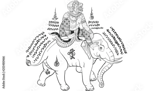 © Bhanupong, Fototapeta premium Thai traditional tattoo, Thai traditional painting in temple vector