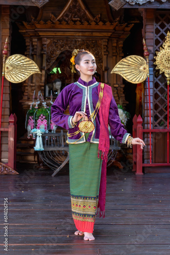 Fototapeta premium Thai woman dressed in traditional Northern Thailand culture costume.