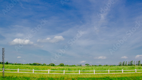 © arinchawit, Obraz premium THAILAND - April 16, 2017:Blue sky background with tiny clouds
