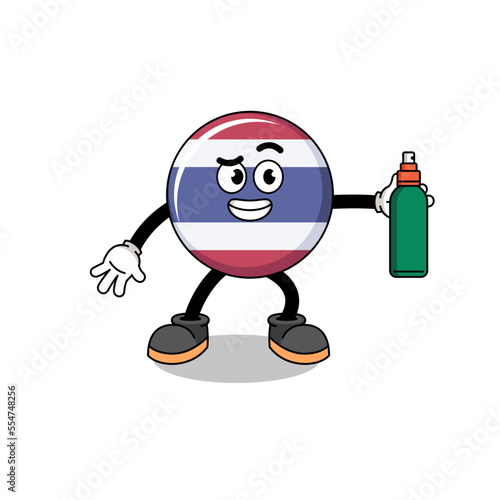 Obraz premium thailand flag illustration cartoon holding mosquito repellent