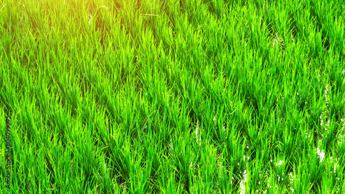 Obraz premium Thailand's vibrant green rice fields, tell a tale of continuity, passing on...