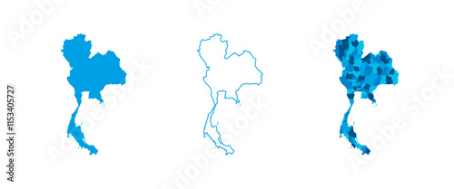 Obraz premium Thailand set of three maps - solid map, outline map and map highlighting...
