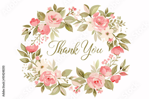 © MdShahajahan, Fototapeta premium Thank you card with flower frame background