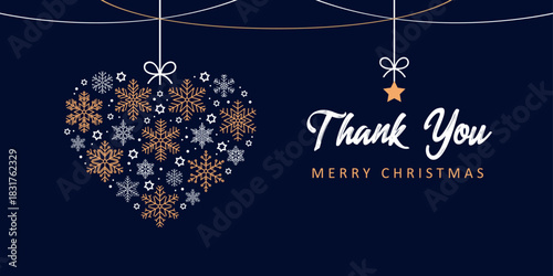© krissikunterbunt, Fototapeta premium thank you christmas greeting card with decorative heart vector illustration