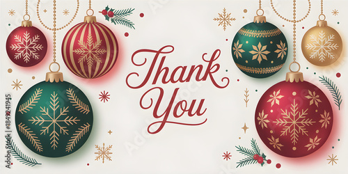 © Lubos Chlubny, Naklejka premium Thank you christmas greeting card with festive ornaments and snowflakes