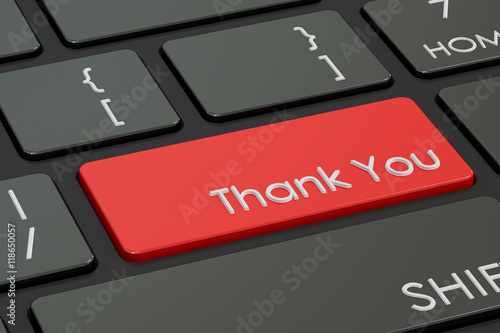 © alexlmx, Fototapeta premium thank you concept, red hot key on keyboard. 3D rendering
