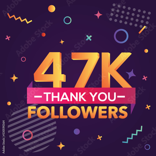 © MrGraphics1990, Fototapeta premium Thank you 47000 followers, thanks banner.First 47K follower congratulation card with geometric figures, lines, squares, circles for Social Networks.Web blogger celebrate a large number of subscribers.