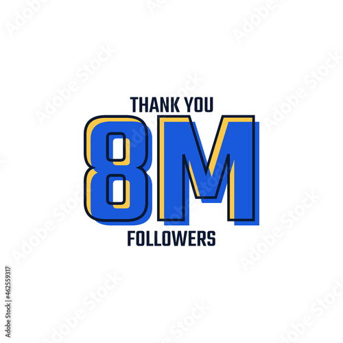 © Imnot99, Fototapeta premium Thank You 8 M Followers Card Celebration Vector. 8000000 Followers Congratulation Post Social Media Template.