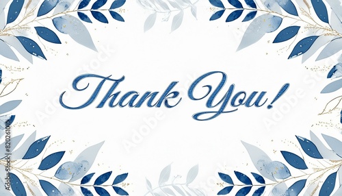 Fototapeta premium Thank You Message - Hand Lettering of Thankful Card or Gift Card for Print - Social Post for Appreciation - Watercolored Leaves and Flowers