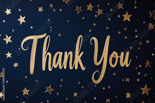 © grey, Fototapeta premium "Thank You" written in elegant gold script on a deep navy background, with subtle stars twinkling in the corners
