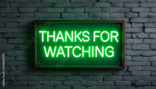 Fototapeta premium Thanks for Watching Neon Sign on Brick Wall, Video End Screen Graphic,...