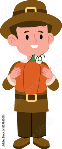 Naklejka premium Thanksgiving Boy Holding Pumpkin