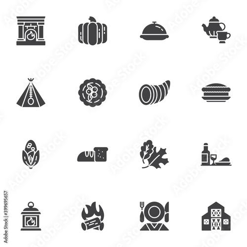 Naklejka premium Thanksgiving day holiday vector icons set, modern solid symbol collection,...