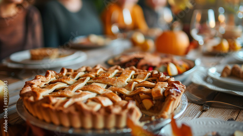 © bvbflo1, Fototapeta premium Thanksgiving family dinner. Traditional apple pie