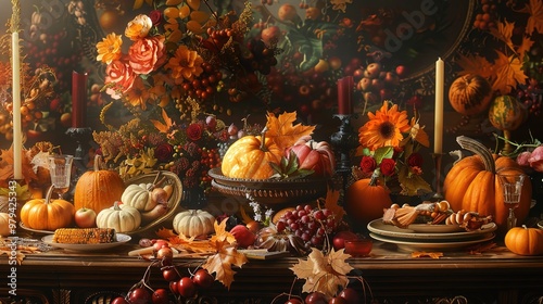 © pixelwallpaper, Fototapeta premium Thanksgiving feast wallpaper
