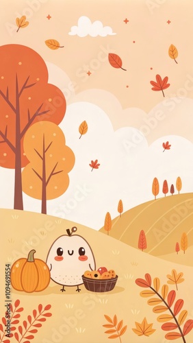 Fototapeta premium thanksgiving minimalist cute cartoon orange background
